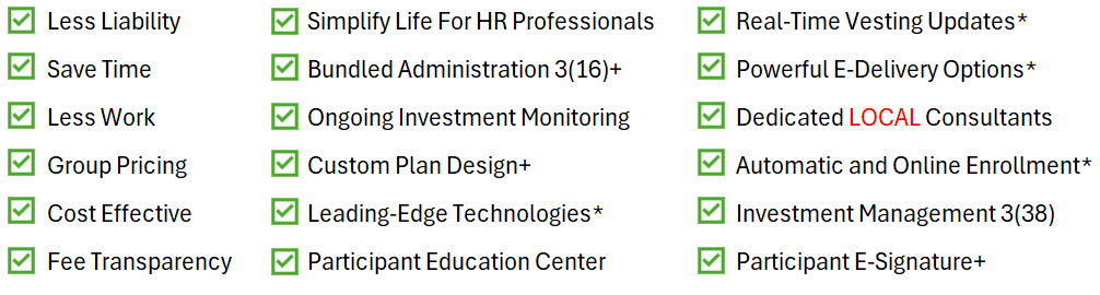 Caldera Wealth has been serving the community for the past 23 years. We provide access to a valuable offering for employers sponsoring a retirement plan. Many employers are seeking less administration work, greater efficiencies and reduction in liability. Caldera Wealth strives to do this and more. We work with some of the largest institutions, who will take on fiduciary status, including tracking employee eligibility, making contributions, processing distributions, completing all plan testing, annual reporting and annual IRS filings. The program also offers participant education and enrollment, financial wellness, investment monitoring for performance and fees.
